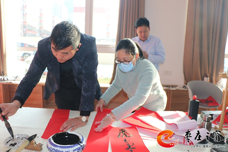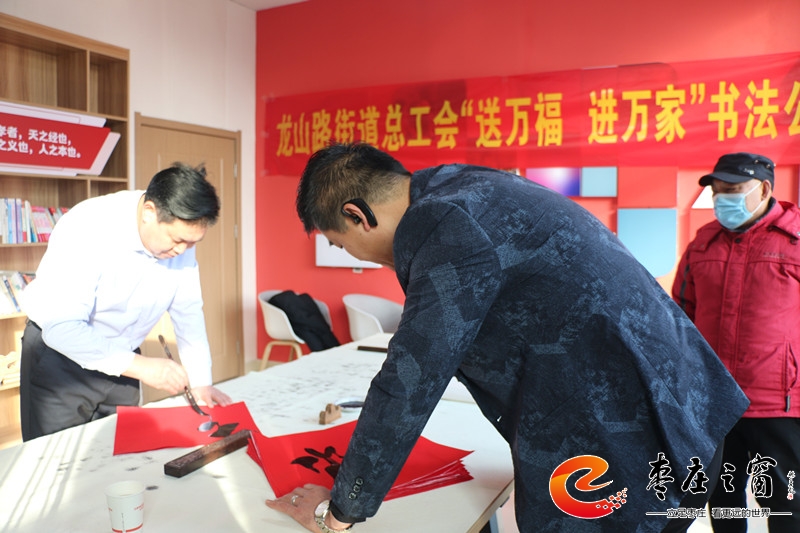 “給大家送‘!玻 卑殡S著新年的祝福,龍山路街道總工會(huì)的工作人員們正將書(shū)法家們寫(xiě)好的一張張福字雙手遞給在場(chǎng)的職工。1月16日上午,市中區(qū)龍山路街道總工會(huì)在公勝街紅色驛站組織開(kāi)展“送萬(wàn)福 進(jìn)萬(wàn)家”書(shū)法公益活動(dòng),邀請(qǐng)省書(shū)法家協(xié)會(huì)的4位書(shū)法家代表,在活動(dòng)現(xiàn)場(chǎng)手寫(xiě)福字和對(duì)聯(lián),為廣大職工群眾以及轄區(qū)企業(yè)送去新春的祝福和問(wèn)候。